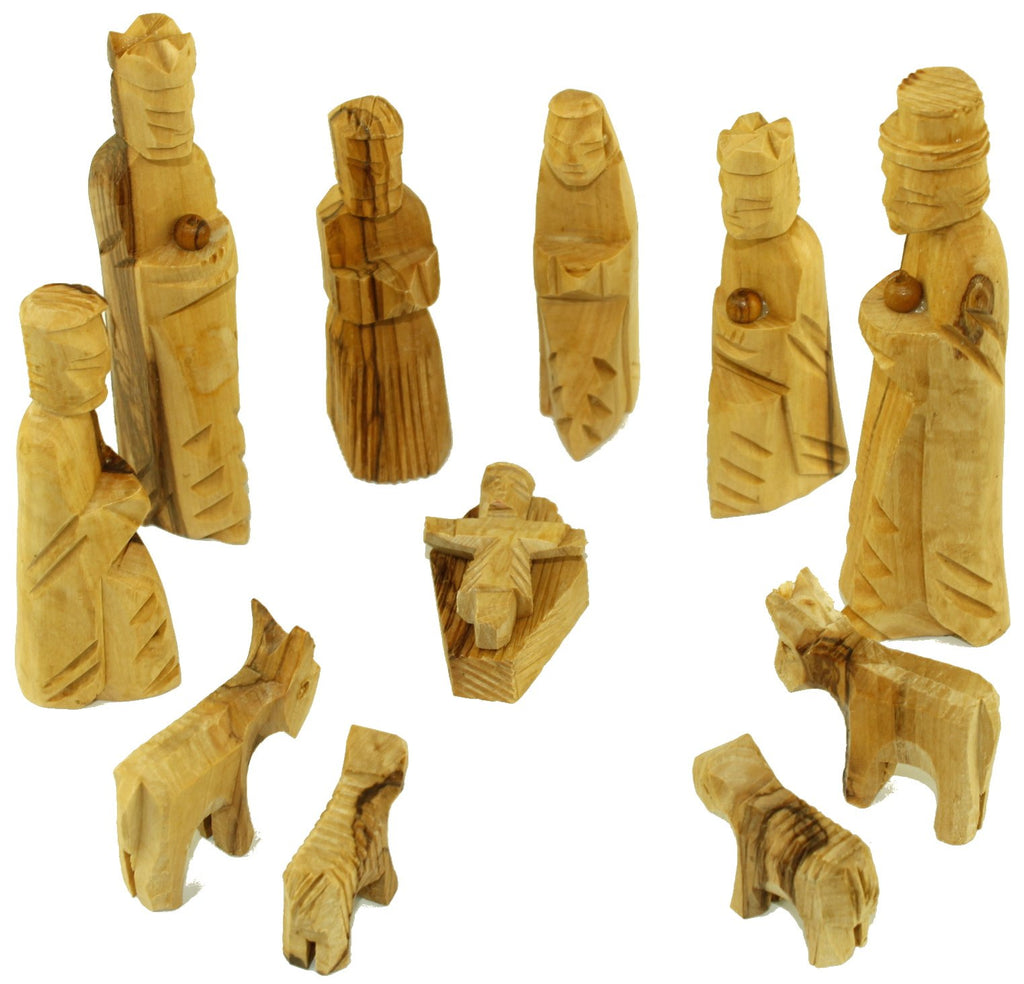 Olive Wood Miniature Nativity Set (12 Pieces Set) - 5 Inches