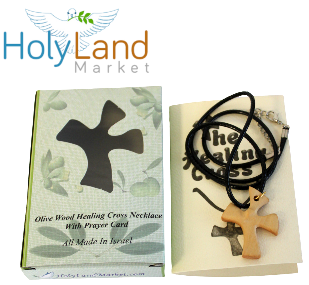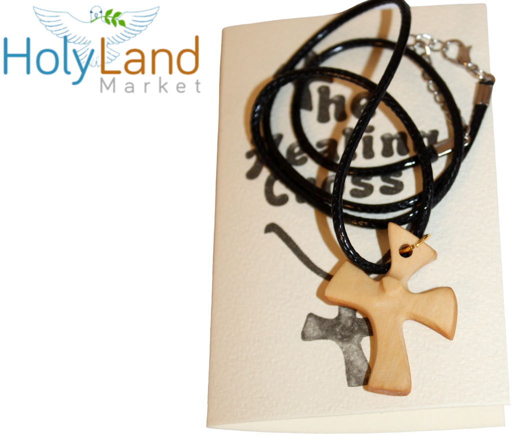 Olive wood Healing Cross Necklace - with Prayers (1.6 x 1.2 inches) Expandable Leather Necklace