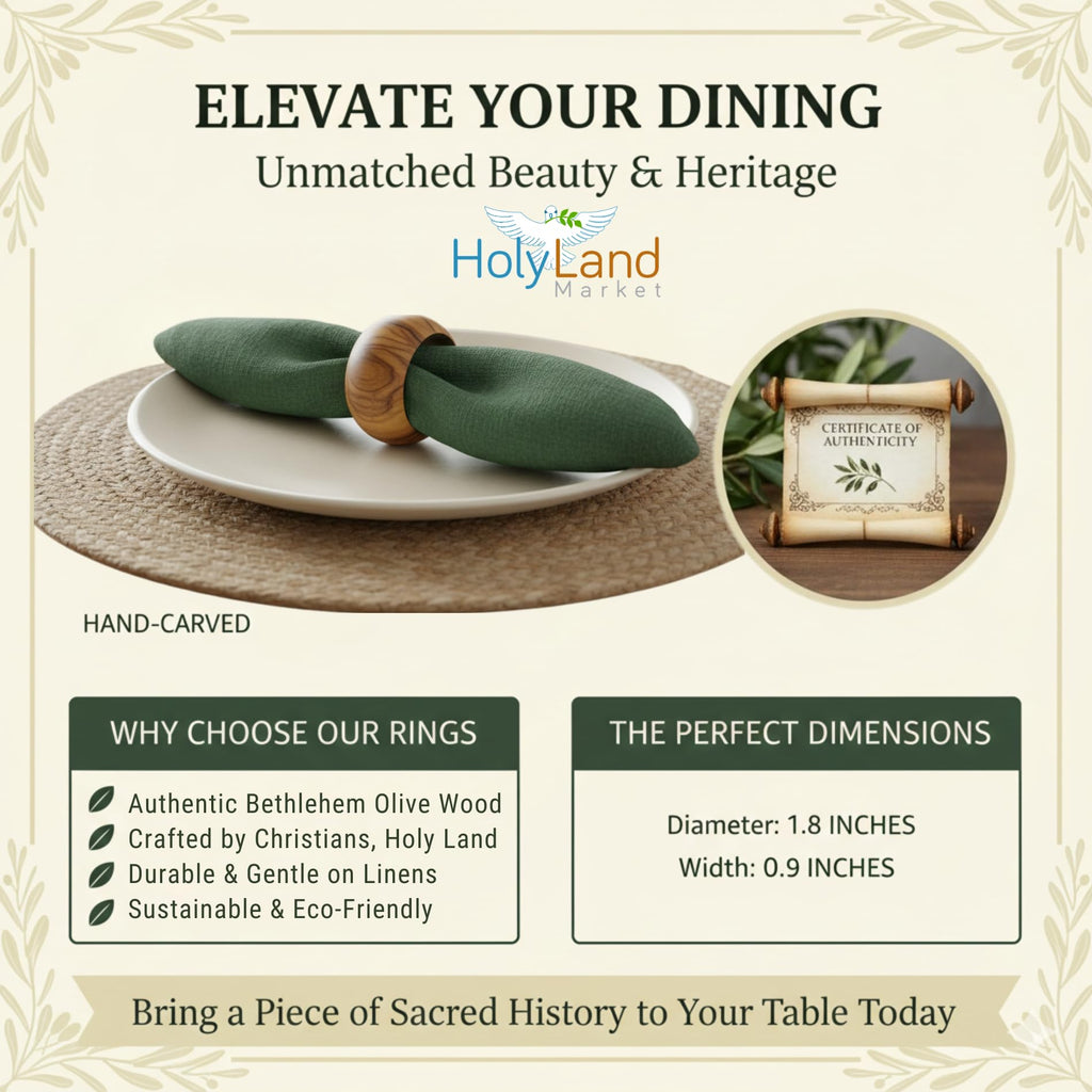 Holy Land Market Hand-Carved Olive Wood Napkin Rings - Set of 6 - Holy Land Bethlehem Wood (Ring is 1.8 Inches in Diameter and 0.9 Inches high)