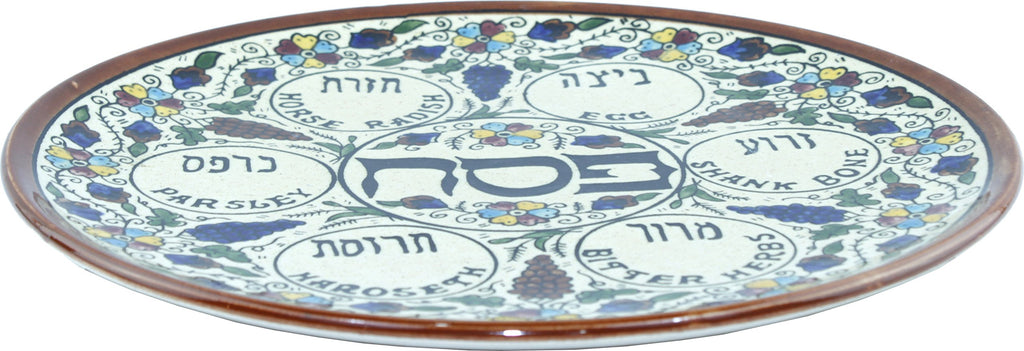 Brown and Colorful Flowers - Passover SEDER Plate - Jewish Dish Armenian Ceramic Hebrew Israel Judaica Gift - Asfour Outlet Trademark
