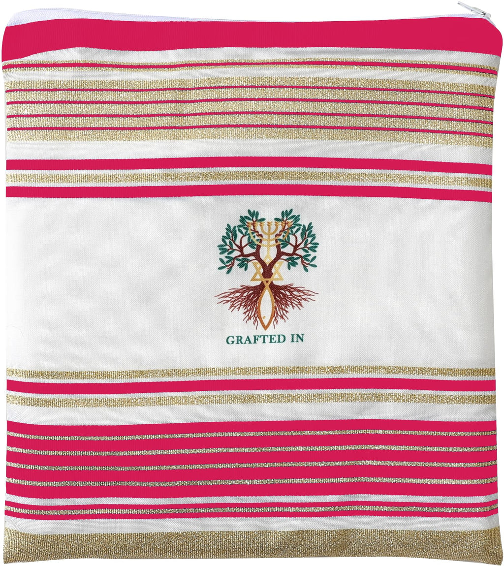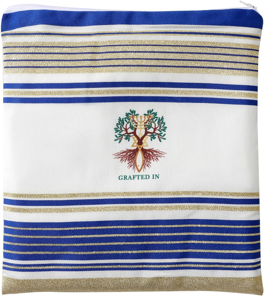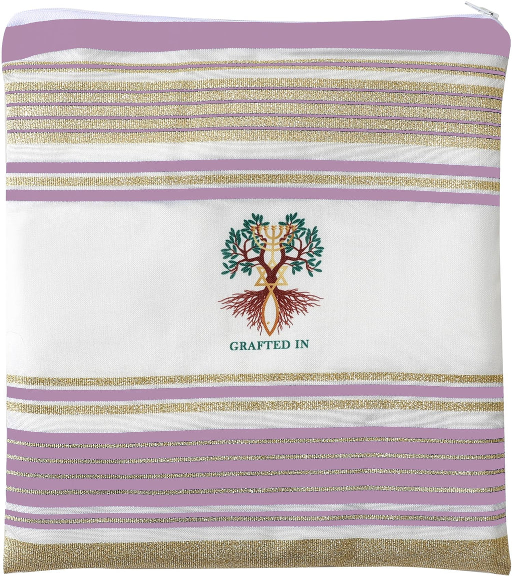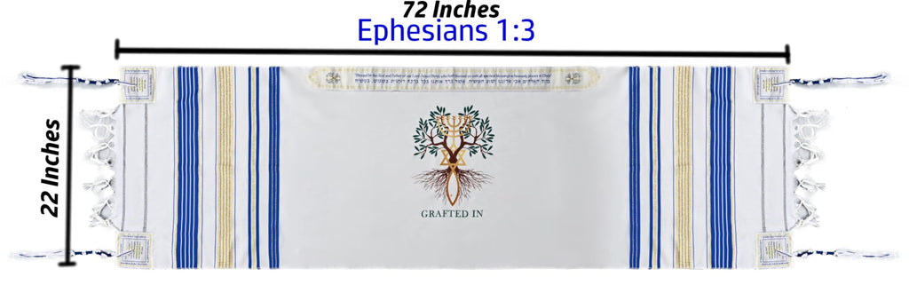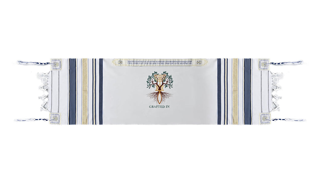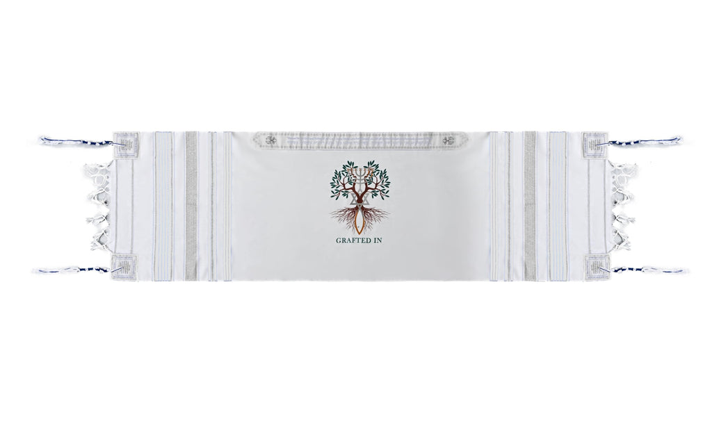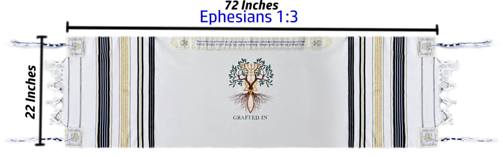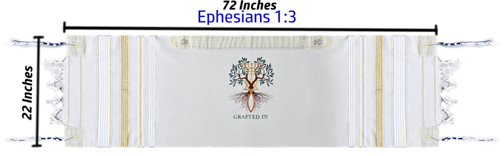 In the context of Messianic Judaism, the term "Grafted In" often refers to the belief that non-Jewish followers of Jesus (Yeshua) are spiritually "grafted in" to the olive tree of Israel, symbolizing their adoption into the covenant promises given to the Jewish people. This concept is derived from passages in the New Testament, particularly in the writings of the apostle Paul in the book of Romans. The imagery of being grafted into the olive tree is used to illustrate the unity and connection between Jewish and Gentile believers in the Messiah. It emphasizes the idea that through faith in Jesus, non-Jewish individuals become partakers of the blessings and promises of God that were initially given to the Jewish people. The term "Grafted In Messianic" refer to a branch of Messianic Judaism that specifically emphasizes this concept of spiritual adoption and the unity of Jewish and Gentile believers in the Messiah. Followers of this belief system often seek to honor Jewish traditions and customs while also embracing their faith in Yeshua as the Messiah. Corners ( English and Hebrew on Tallit ): Genesis 1:1 "In the beginning God created the heaven and the earth" (Gen. 1:1 KJV) John 1:1 "In the beginning was the Word, and the Word was with God, and the Word was God" (Jn. 1:1 KJV) Isaiah 65:17 "For, behold, I create new heavens and a new earth: and the former shall not be remembered, nor come into mind" (Isa. 65:17 KJV) Revelation 21:1 "And I saw a new heaven and a new earth: for the first heaven and the first earth were passed away; and there was no more sea." (Rev. 21:1 KJV) Blessing - Atara Neck / Head Piece ( English and Hebrew on Tallit ): "Blessed be the God and Father of our Lord Jesus Christ, who hath blessed us with all spiritual blessings in heavenly places in Christ" (Eph. 1:3 KJV) © ©, © ª ª ©, © Grafted IN - Romans 11:11-31 contains profound insights into God's mercy, plan of salvation, and the relationship between Jews and Gentiles in the context of faith. Here are some inspiring words based on this passage: God's plan of salvation includes both Jews and Gentiles, extending His mercy to all who believe in Him.