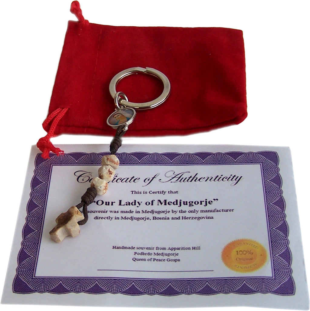 MEDJUGORJE - Peace Peace Peace keys ring from Apparation hill stones and ship...