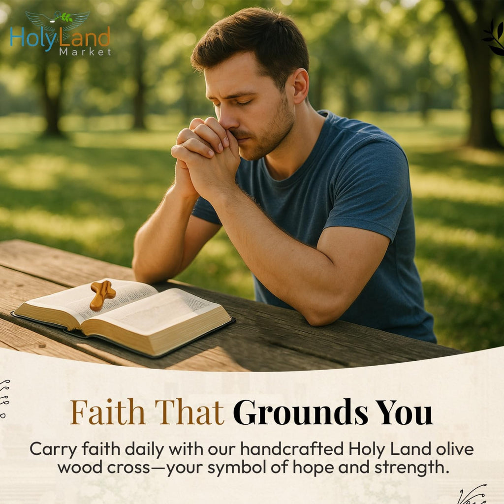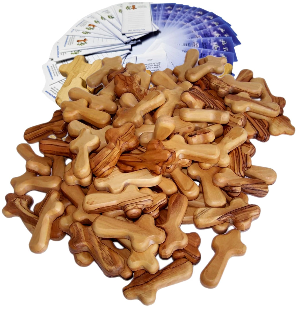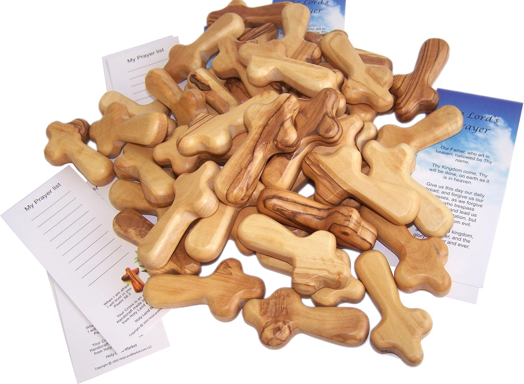 Pequeñas cruces de madera de olivo de bolsillo / sostén del Mercado de Tierra Santa con certificados (2.5 pulgadas).