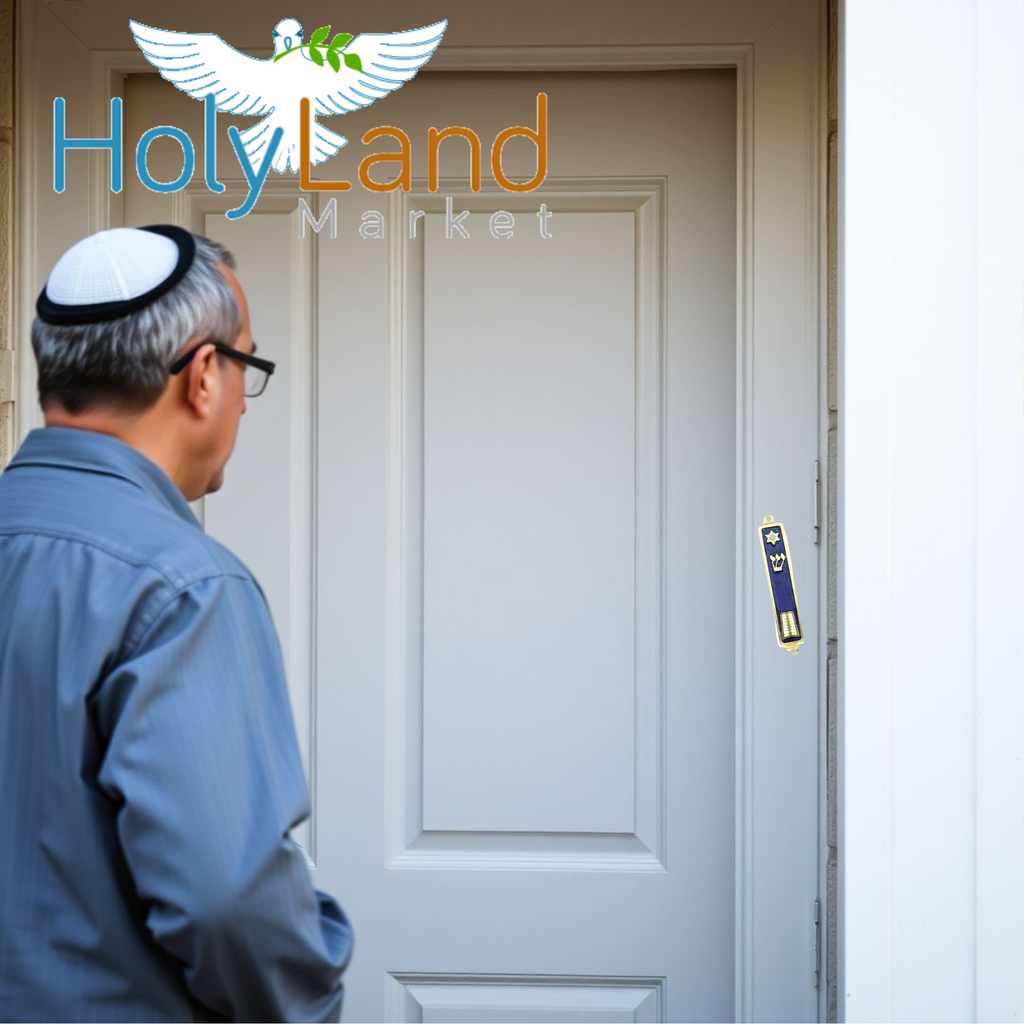 Mezuzá dorada de 10 mandamientos del Mercado de Tierra Santa con pergamino dentro (cavidad en la parte posterior de aproximadamente 3 pulgadas)