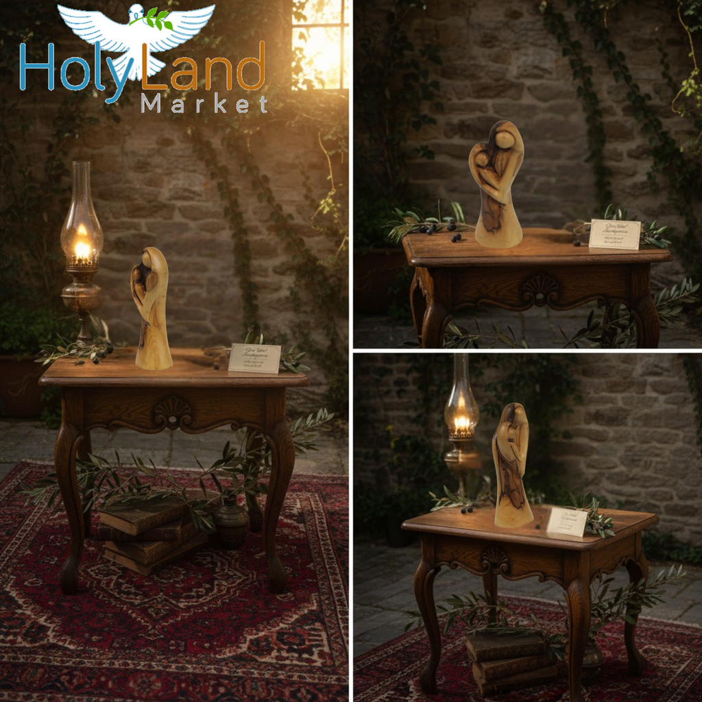 - Atención al Detalle Tallada a Mano: Cada pieza es tallada y terminada a mano de forma individual; no hay dos esculturas iguales. Las variaciones naturales en la veta de la madera de olivo hacen que cada estatua sea un recuerdo devocional única y hermosa.
