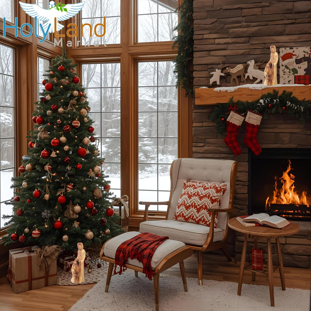 Estatua de la Sagrada Familia de madera de olivo del Mercado de Tierra Santa, figura de nacimiento tallada a mano de 15 cm de Belén, escultura decorativa religiosa para el hogar