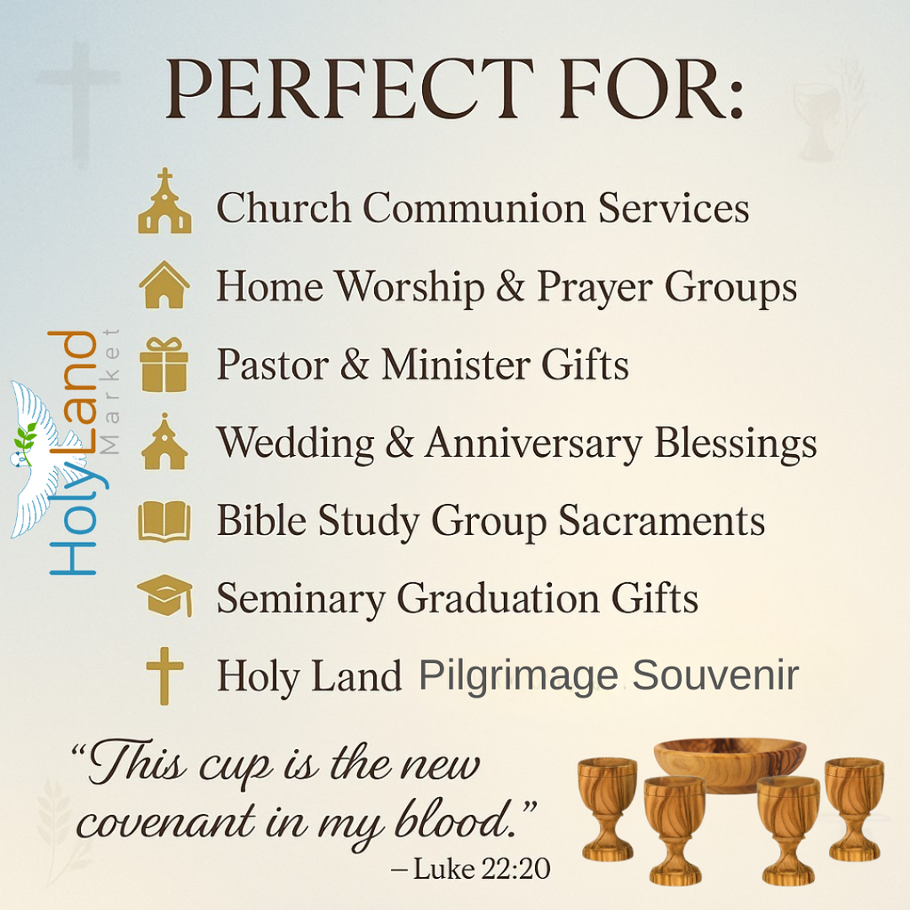 - MEANINGFUL GIFT FROM WHERE JESUS WALKED - Perfect for ordination, pastor appreciation, church anniversaries, seminary graduation, Holy Land pilgrimage souvenirs, or wedding blessings. Every time you serve communion from these vessels, you connect your worship to the very land where Christ instituted this sacred sacrament. A treasured heirloom to pass down through generations. 100% satisfaction guaranteed.