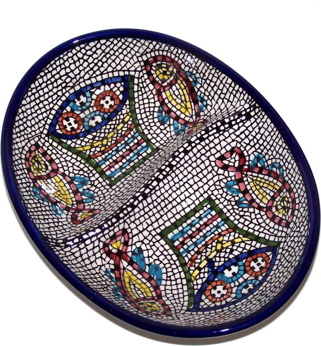 Double Dish Tabgha - Miracle of Multiplication of Fish and Bread Ceramic Serving Snack Dish (7.5 Inches) - Asfour Outlet Trademark