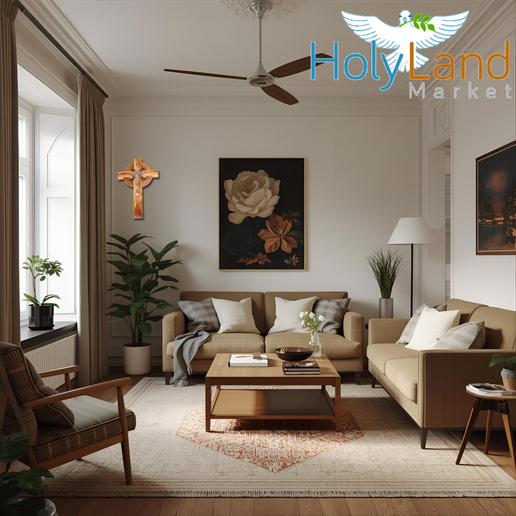 Experience the beauty, history, and spiritual strength of the Holy Land with this handmade 10-inch Celtic Wall Crucifix from Holy Land Market. Carefully carved from genuine Bethlehem olive wood, this crucifix brings together two powerful Christian traditionsâthe protective Saint Benedict Medal and the ancient Celtic Cross.