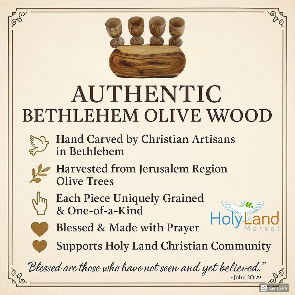 - AUTHENTIC HOLY LAND HERITAGE WITH CERTIFICATE - Each set comes with official Certificate of Authenticity verifying Bethlehem origin, featuring the complete Lord's Prayer on reverse side. Made by devoted Christian craftsmen who pray over each piece during creation. Your purchase directly supports Christian artisan families in the Holy Land, preserving 2,000+ years of sacred craftsmanship tradition.