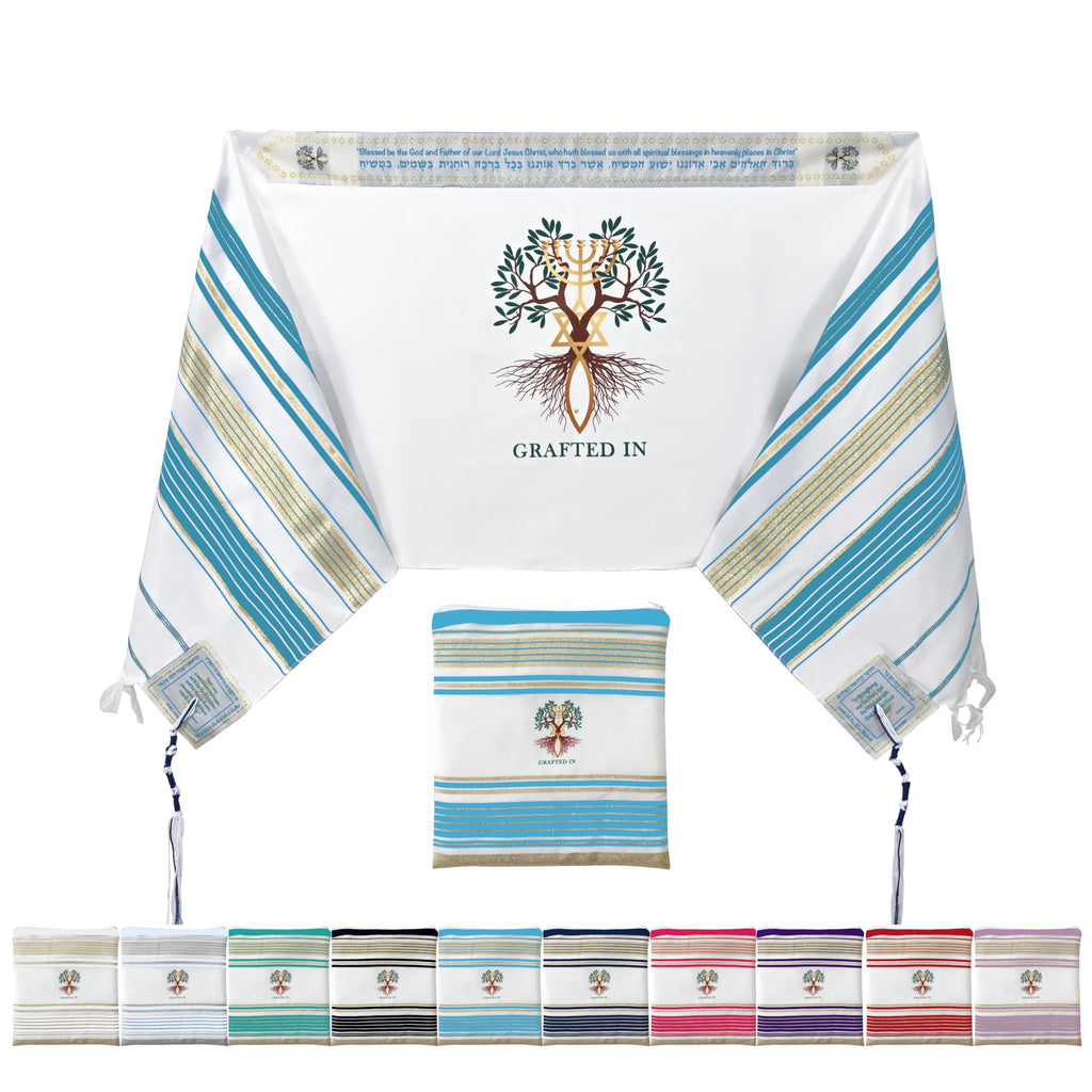 Holy Land Market Grafted IN - Messianic Christian Prayer Shawl/Tallit Prayer Shawl - Creation and Restoration Talit (Black)
