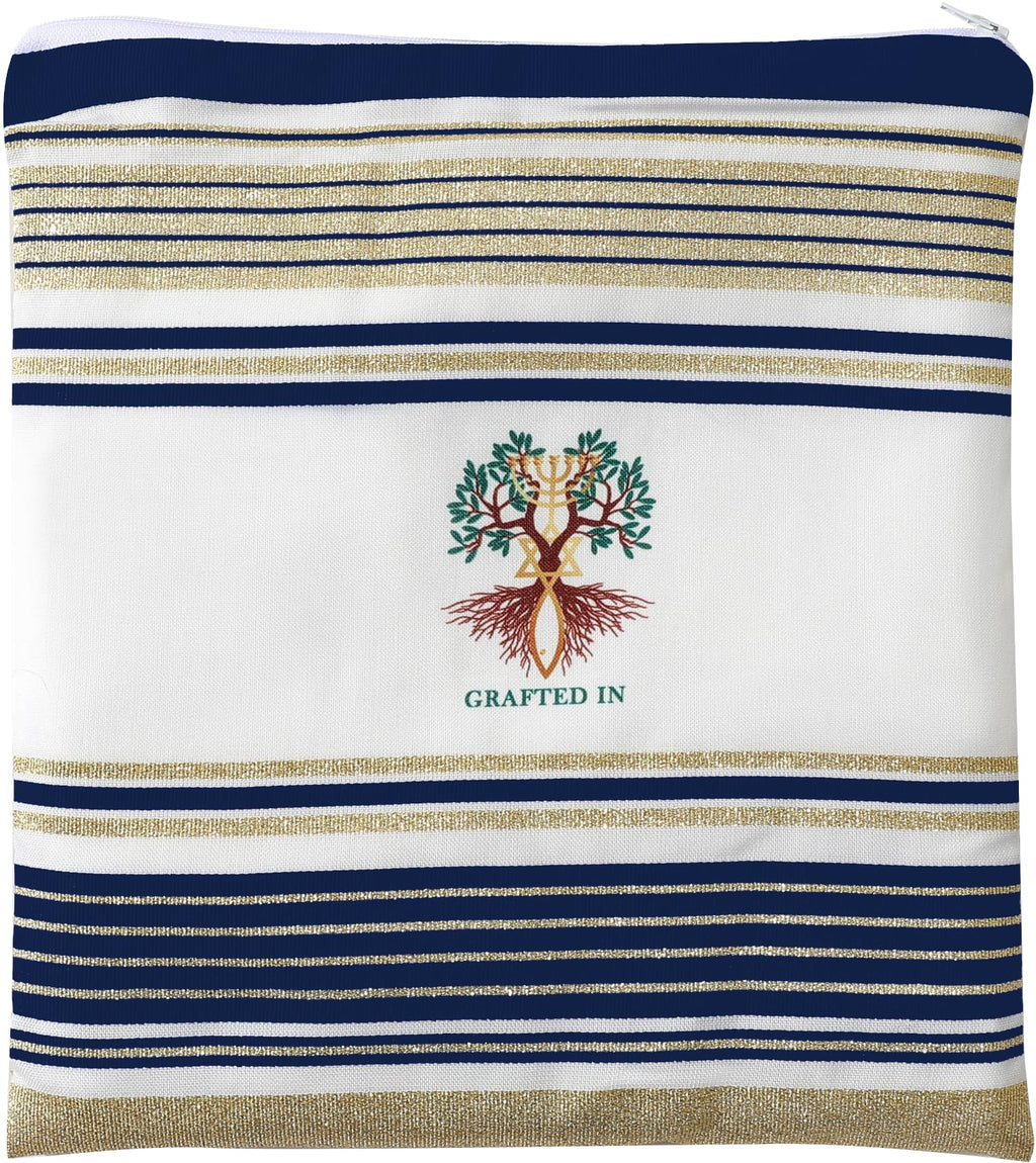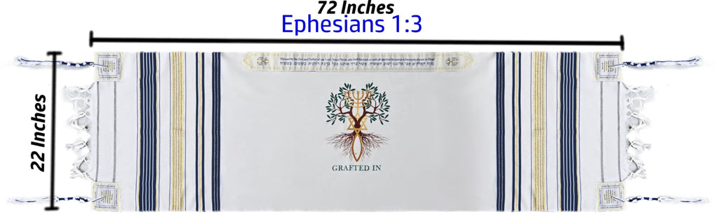 In the context of Messianic Judaism, the term "Grafted In" often refers to the belief that non-Jewish followers of Jesus (Yeshua) are spiritually "grafted in" to the olive tree of Israel, symbolizing their adoption into the covenant promises given to the Jewish people. This concept is derived from passages in the New Testament, particularly in the writings of the apostle Paul in the book of Romans. The imagery of being grafted into the olive tree is used to illustrate the unity and connection between Jewish and Gentile believers in the Messiah. It emphasizes the idea that through faith in Jesus, non-Jewish individuals become partakers of the blessings and promises of God that were initially given to the Jewish people. The term "Grafted In Messianic" refer to a branch of Messianic Judaism that specifically emphasizes this concept of spiritual adoption and the unity of Jewish and Gentile believers in the Messiah. Followers of this belief system often seek to honor Jewish traditions and customs while also embracing their faith in Yeshua as the Messiah. Corners ( English and Hebrew on Tallit ): Genesis 1:1 "In the beginning God created the heaven and the earth" (Gen. 1:1 KJV) John 1:1 "In the beginning was the Word, and the Word was with God, and the Word was God" (Jn. 1:1 KJV) Isaiah 65:17 "For, behold, I create new heavens and a new earth: and the former shall not be remembered, nor come into mind" (Isa. 65:17 KJV) Revelation 21:1 "And I saw a new heaven and a new earth: for the first heaven and the first earth were passed away; and there was no more sea." (Rev. 21:1 KJV) Blessing - Atara Neck / Head Piece ( English and Hebrew on Tallit ): "Blessed be the God and Father of our Lord Jesus Christ, who hath blessed us with all spiritual blessings in heavenly places in Christ" (Eph. 1:3 KJV) © ©, © ª ª ©, © Grafted IN - Romans 11:11-31 contains profound insights into God's mercy, plan of salvation, and the relationship between Jews and Gentiles in the context of faith. Here are some inspiring words based on this passage: God's plan of salvation includes both Jews and Gentiles, extending His mercy to all who believe in Him.