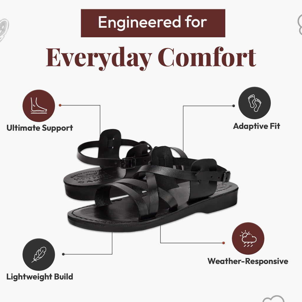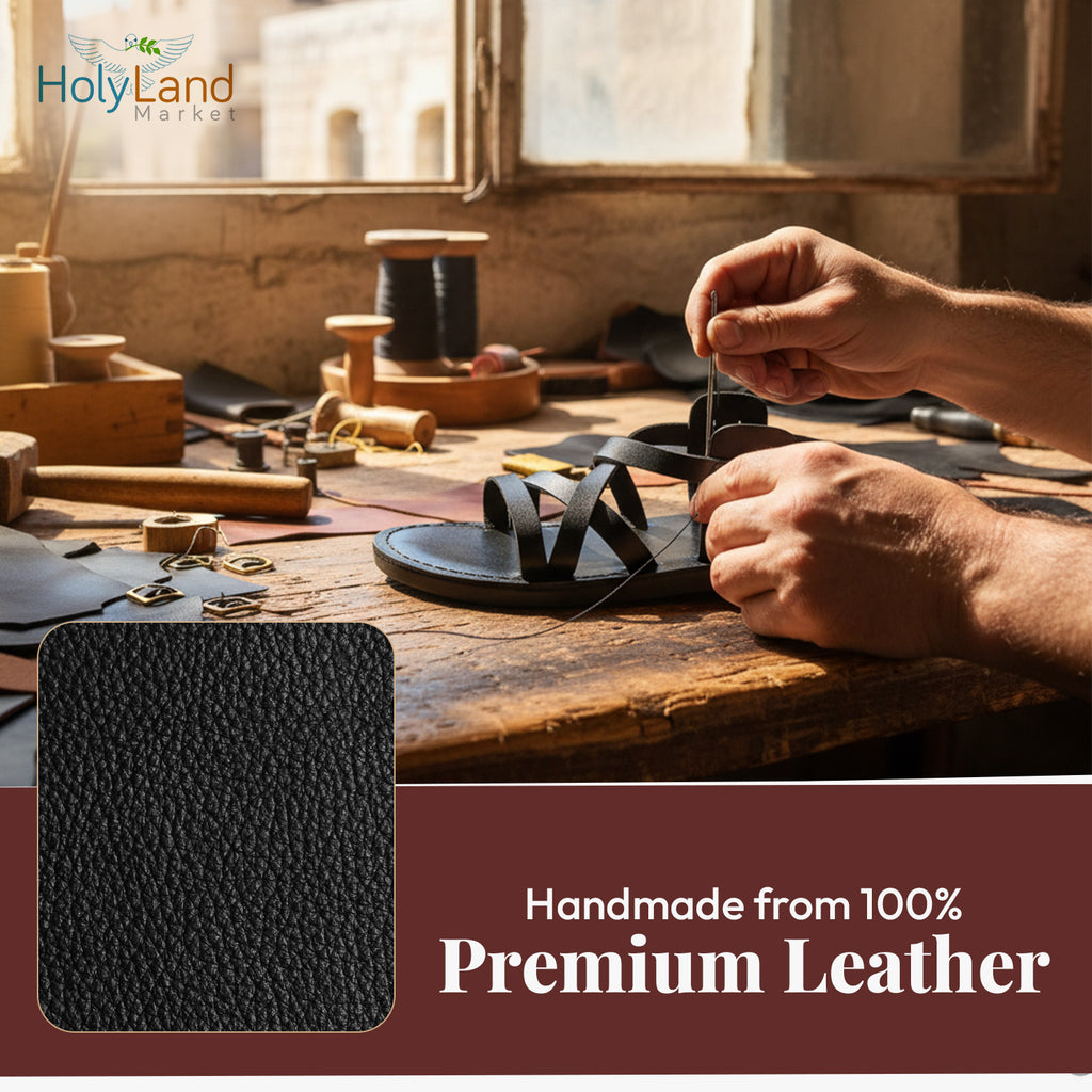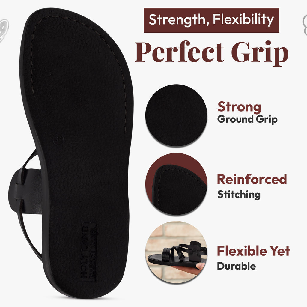 Holy Land Market Men/Women Biblical Jesus Leather Sandals/Slides From Jerusalem (Black Style II)